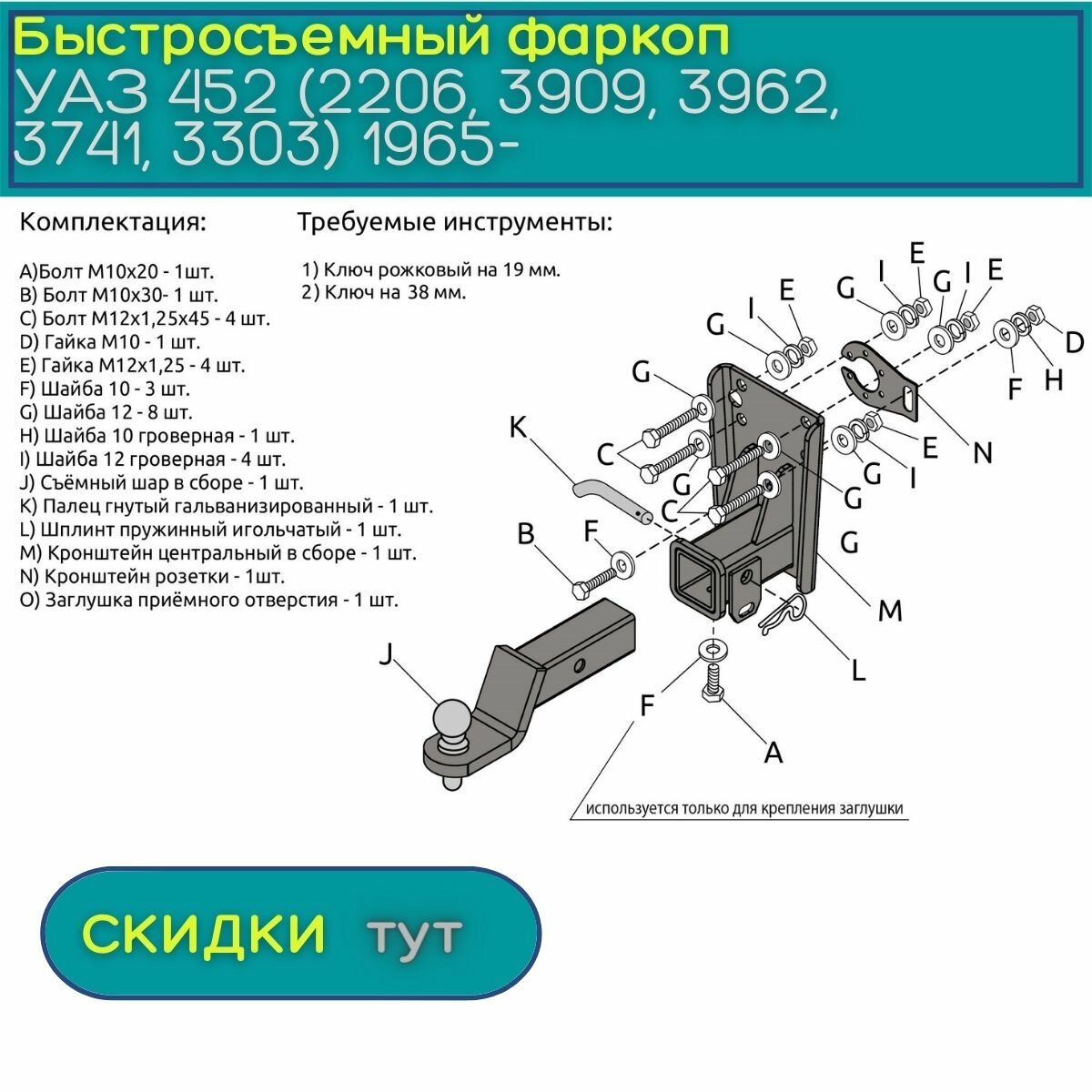 Фаркоп под квадрат УАЗ 452 1965- (без электрики) PT Group UZB-65-991122.00 интересное:
