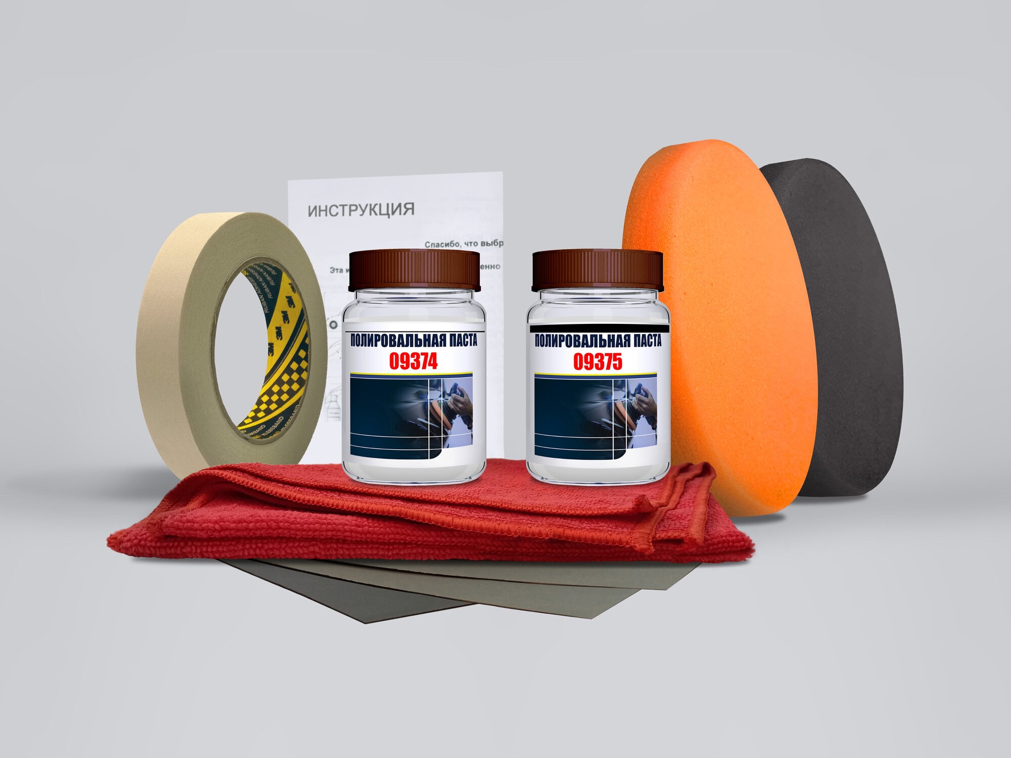Купить №1 (значительные повреждения фар 09374, 09375) Профессиональный набор PODKRASKA.RU для полировки автомобиля, фар, кузова с пастами 3М