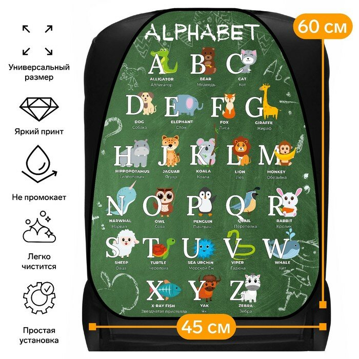 Накидка на сиденье автомобильное Cartage английский алфавит, ПВХ, 60 х 45 см, европодвес интересное: