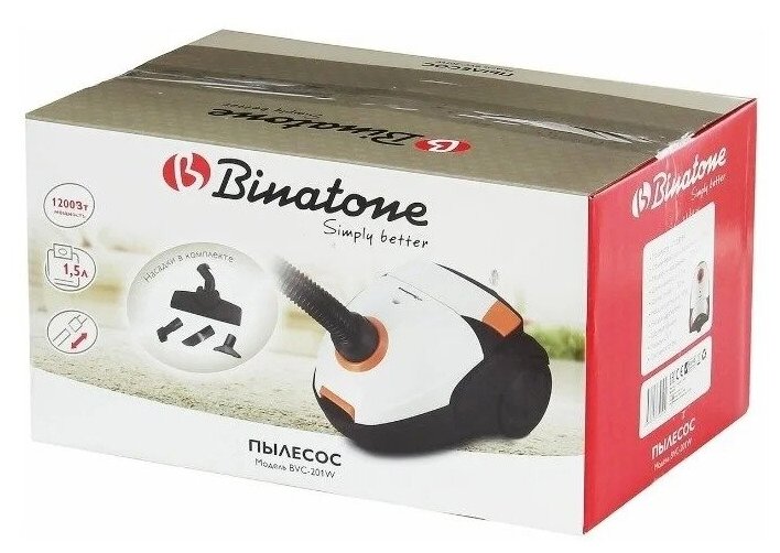 Купить Пылесос Binatone BVC-201W, белый/оранжевый