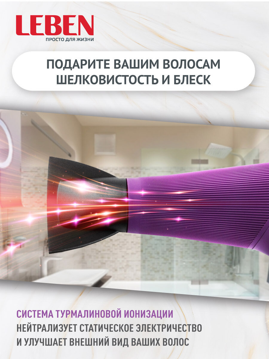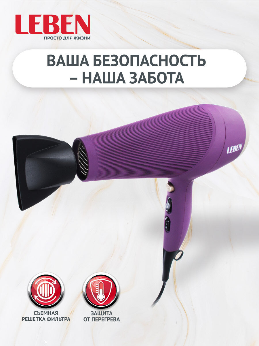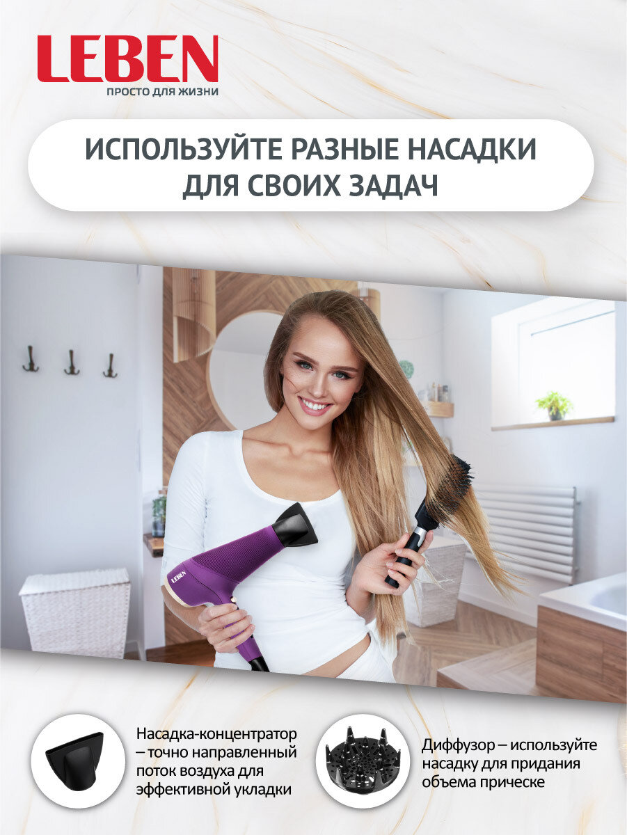 LEBEN Фен для волос 2200Вт, 2 скорости, 4 темп.реж, с диффузором и ионизацией интересное:
