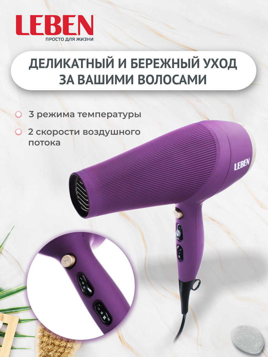 Фен для волос с диффузором и ионизацией, 2 скорости, с 3-мя режимами температуры, 2200 Вт LEBEN