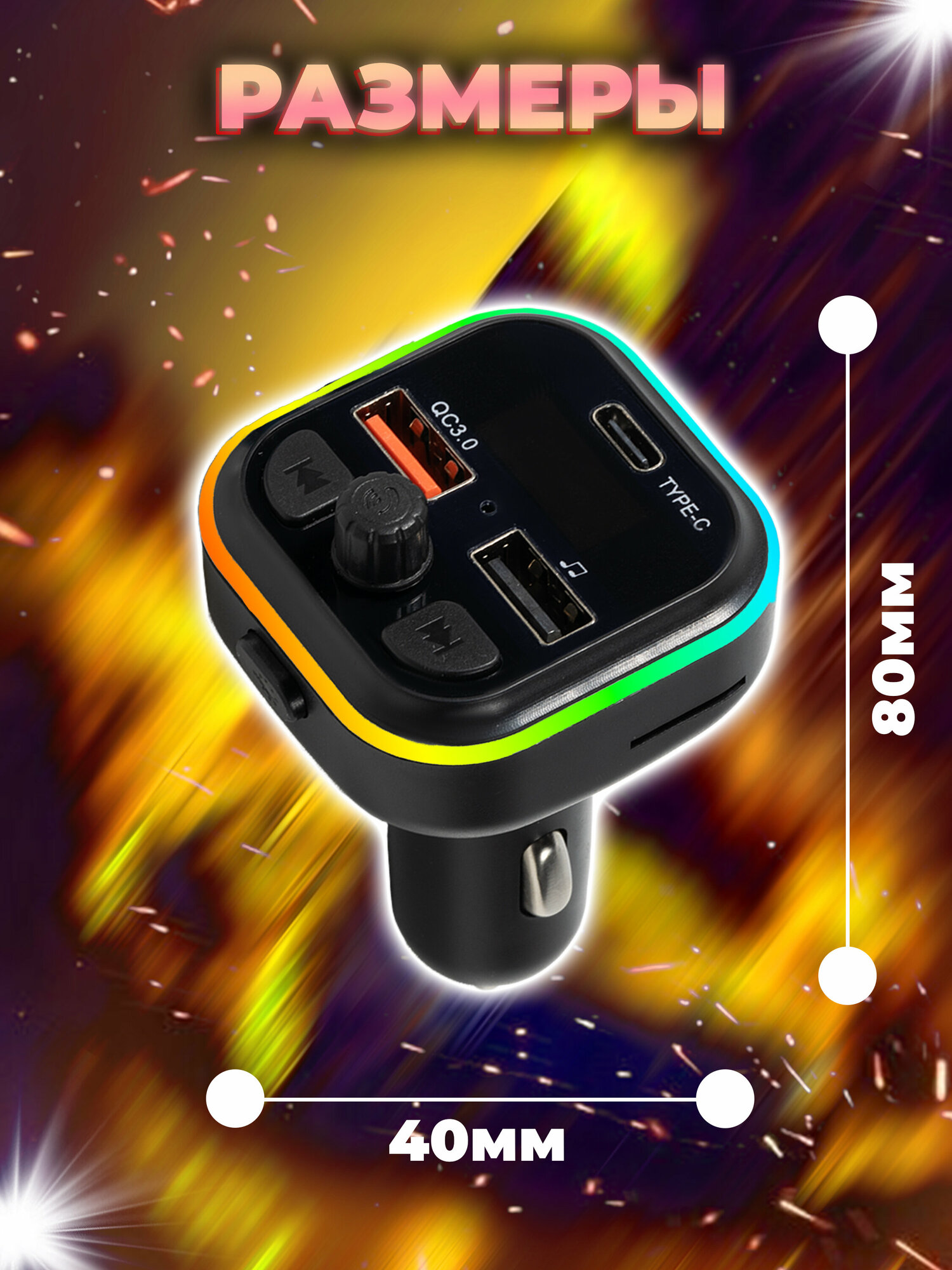 Орбита / TS-CAF120 FM-трансмиттер с bluetooth/микрофоном/ для автомобиля/ зарядник QC 3.0 для авто в прикуриватель