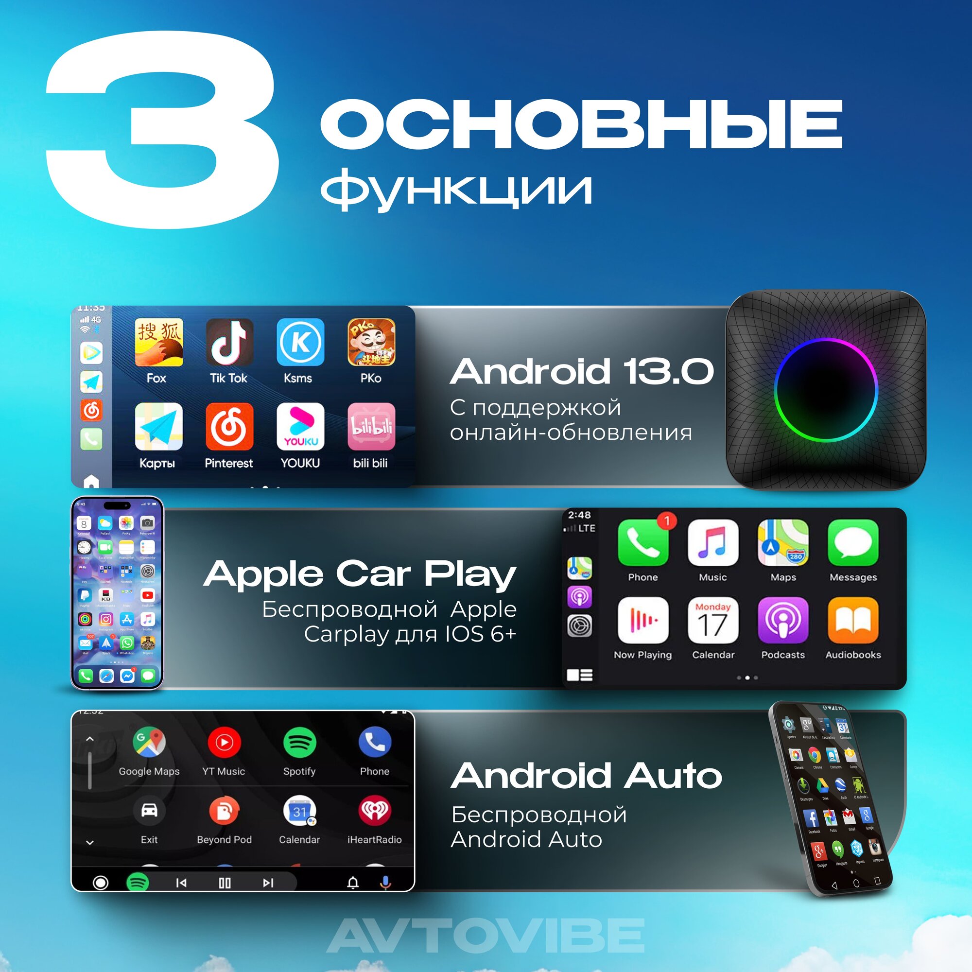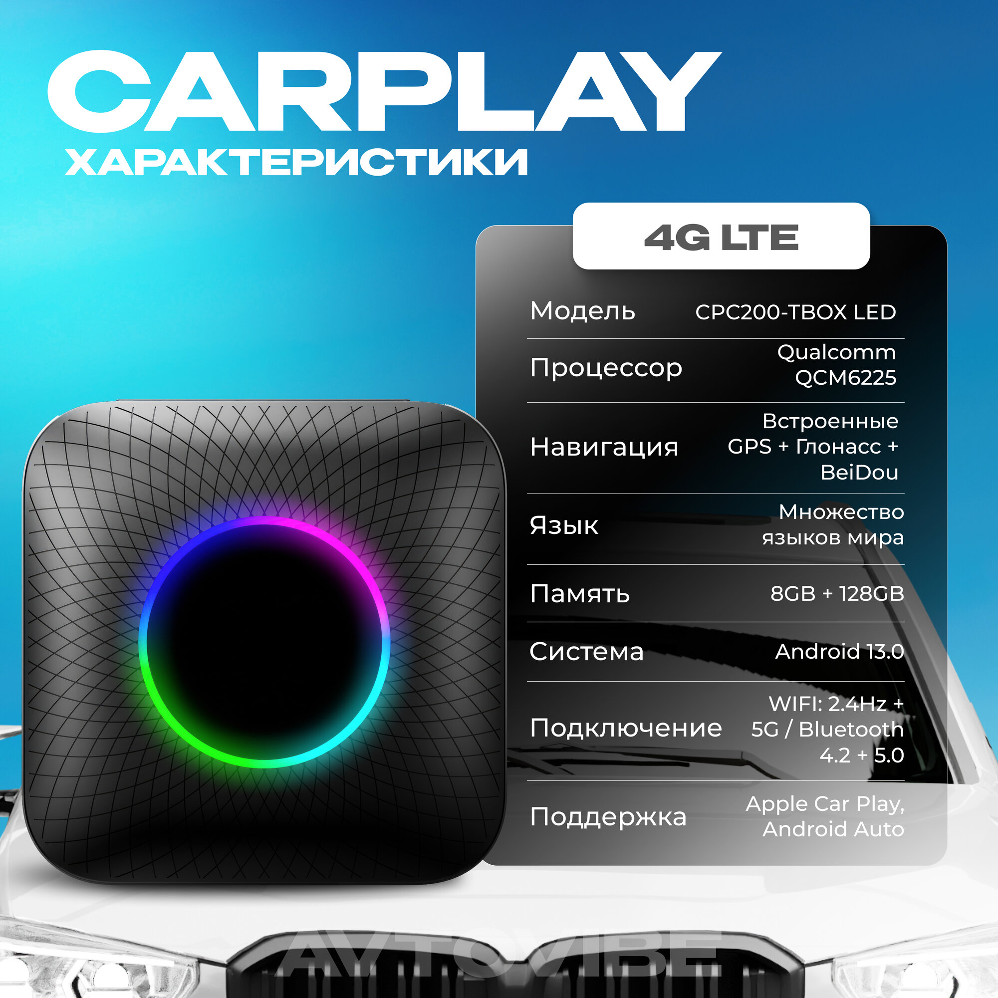 CarPlay Carlinkit Tbox Ambient 6225, Bluetooth-адаптер автомобильный Android 13, 8+128 Гб интересное: