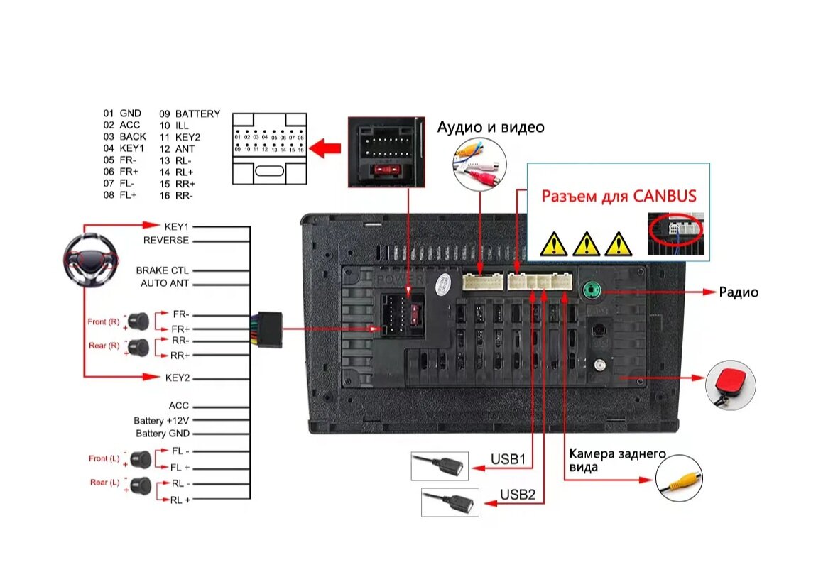 | Подробная комплектация | автомобильное радио, рамка, силовой кабель, модуль GPS ,2 USB-кабеля, Кабель видеовхода RCA вход и выход |