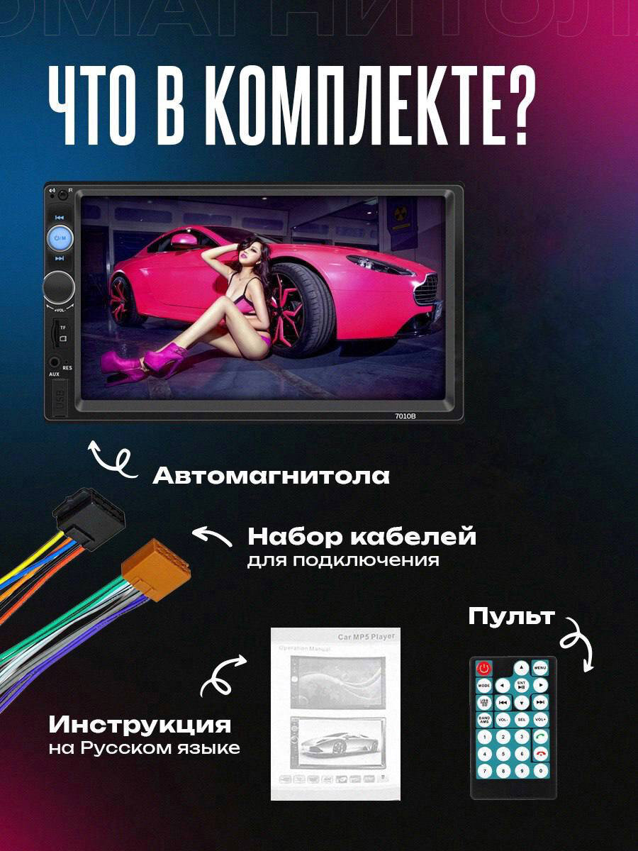 | Подробная комплектация | магнитола, провода для подключения, камера заднего вида, пульт, инструкция на русском языке, подарок |