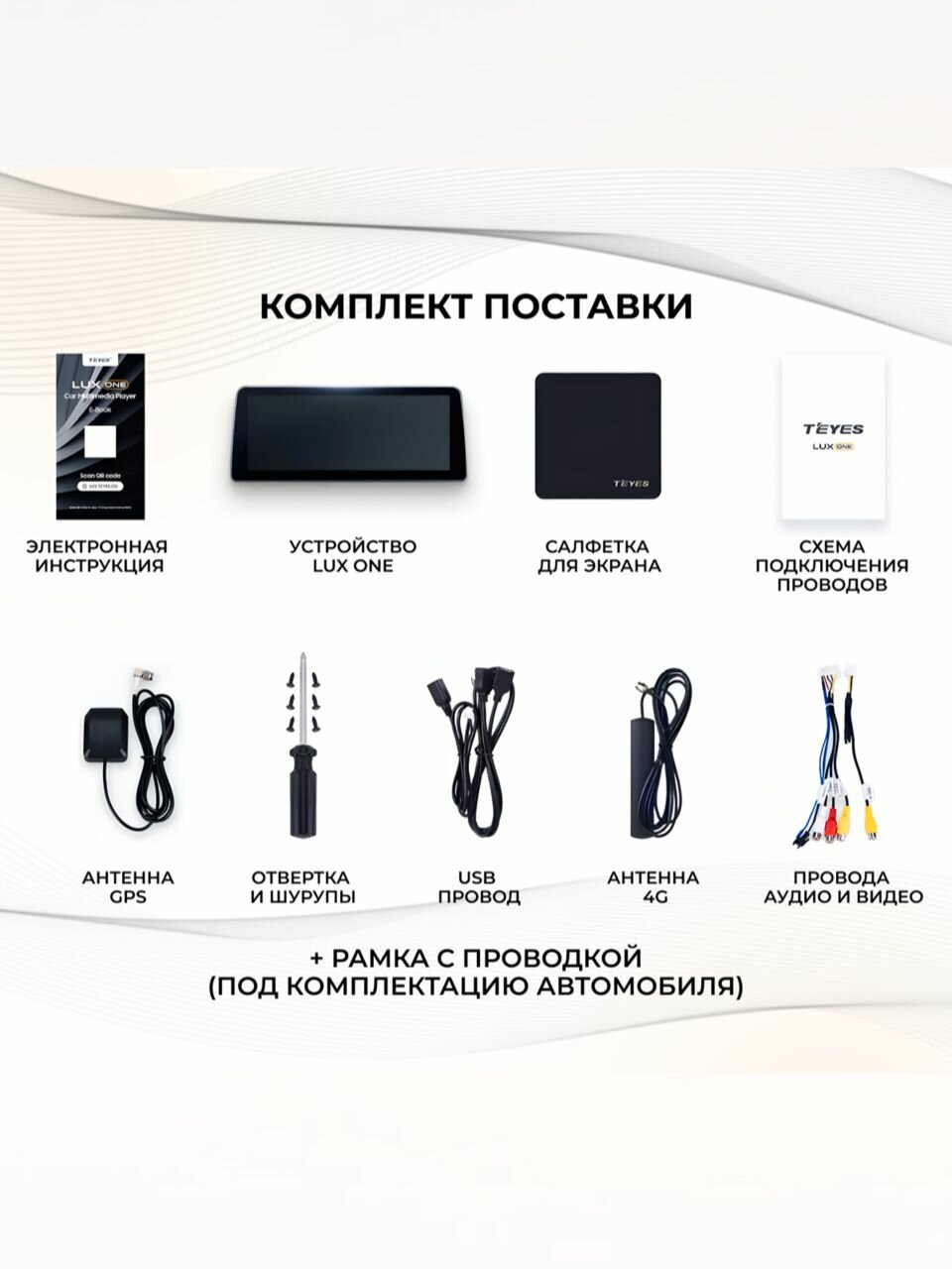 | Подробная комплектация | Планшет, Рамка, Электронная инструкция, Схема подключения проводов, 4G антенна, GPS антенна, Салфетка, Отвертка и шурупы, Провода аудио и видео, USB провод. |