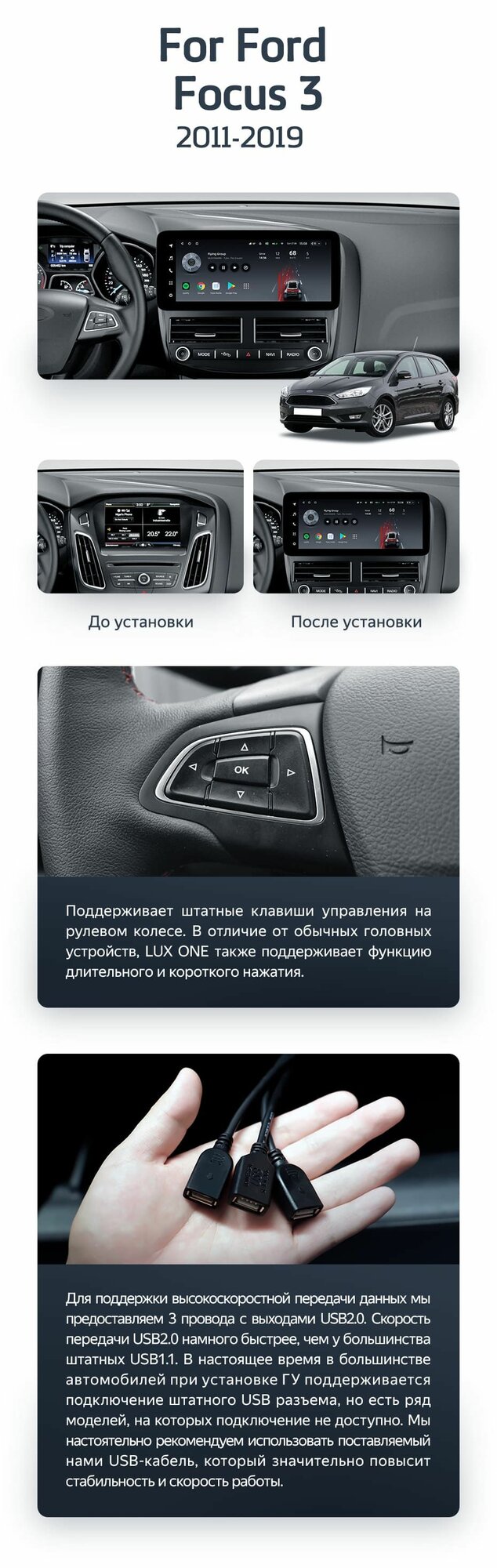 Штатная магнитола Teyes LUX ONE 4/32 Ford Focus 3 Mk 3 (2011-2019) интересное: