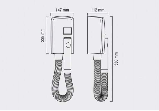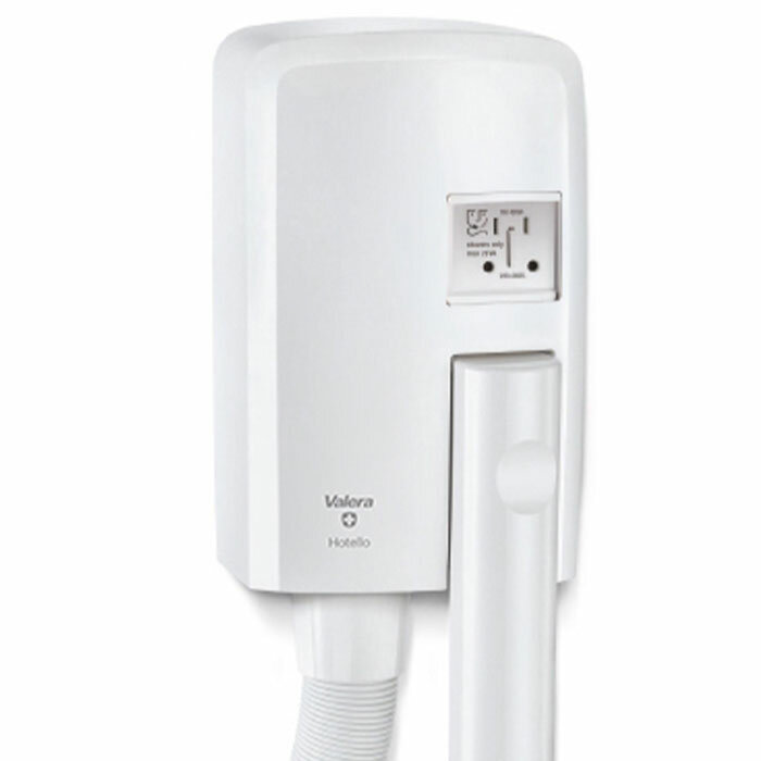 Фен настенный Valera Hospitality Hotello Super AC Shaver (832.02/RT), мощность 1400 Вт, автоматическое включение и выключение, супербезопасный, электрический таймер, розетка для бритвы, суперкомпактный, растягивающийся шланг, лёгкий монтаж