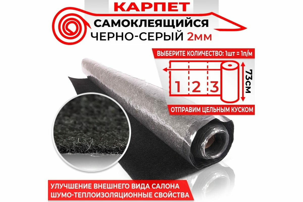 Купить Карпет для авто самоклеящийся DreamCar черно-серый 2мм 0.73м х 1п.м