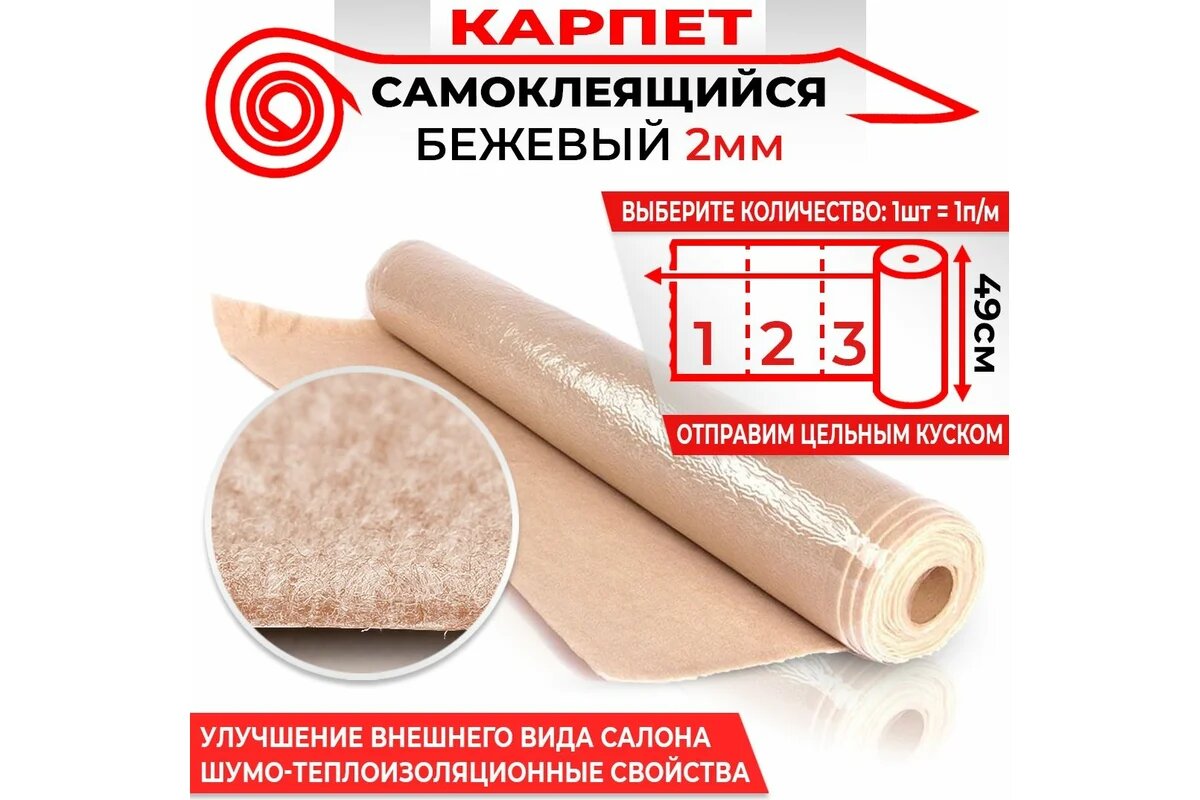 Купить Карпет для авто самоклеящийся DreamCar бежевый 2мм 0.49м х 1п.м