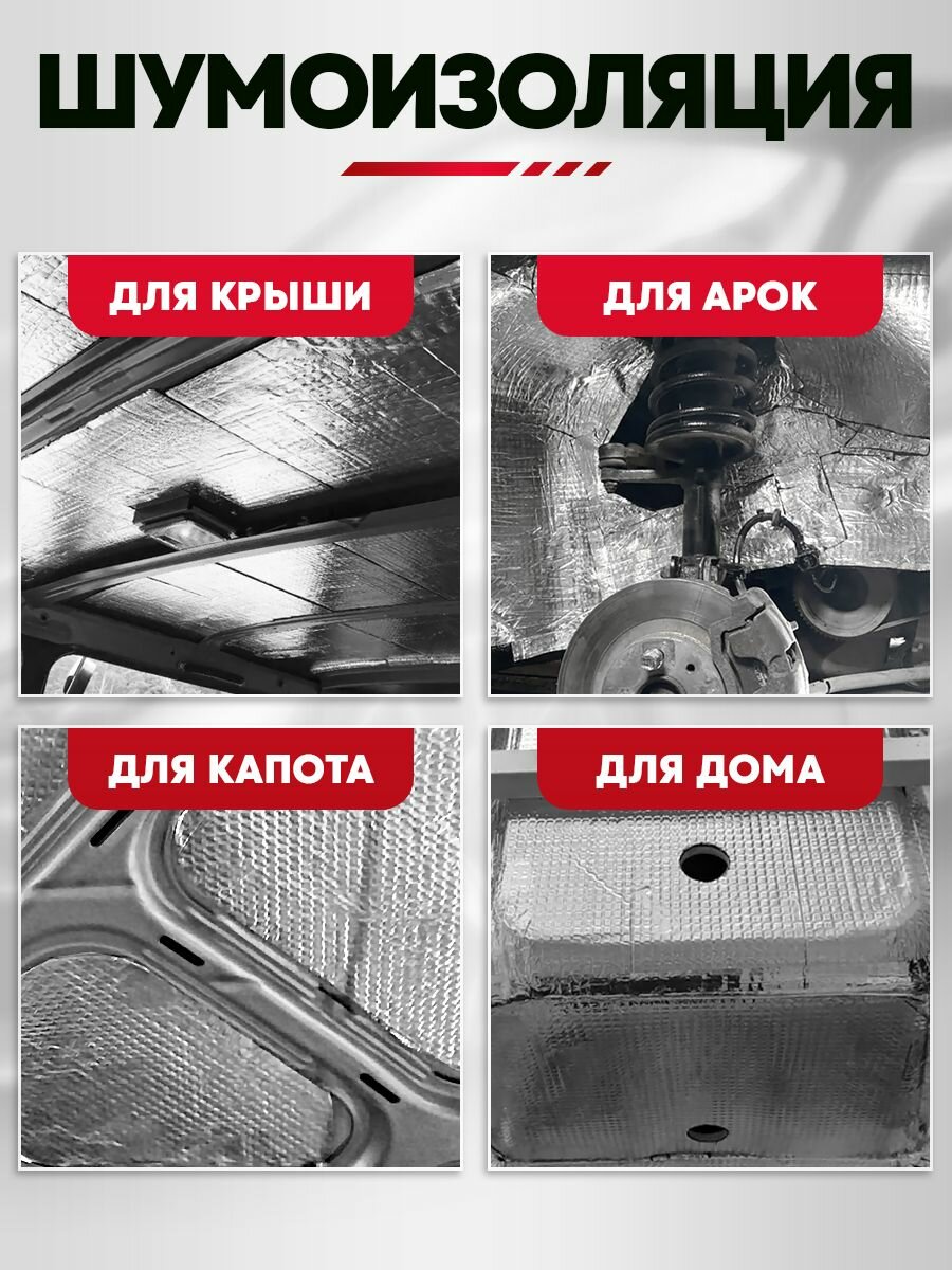 | Дополнительная информация | Универсальная самоклеящаяся шумоизоляция и виброизоляция для автомобмля, стальных ванн, моек, поддонов, отливов |