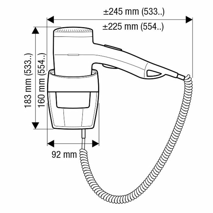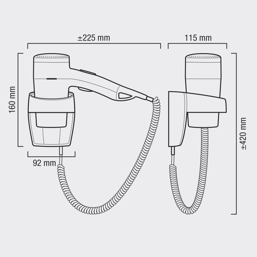 Фен настенный Valera Hospitality Executive 1200 (554.01/038B), мощность 1200 Вт, настенный держатель, концентратор, профессиональный спиральный шнур