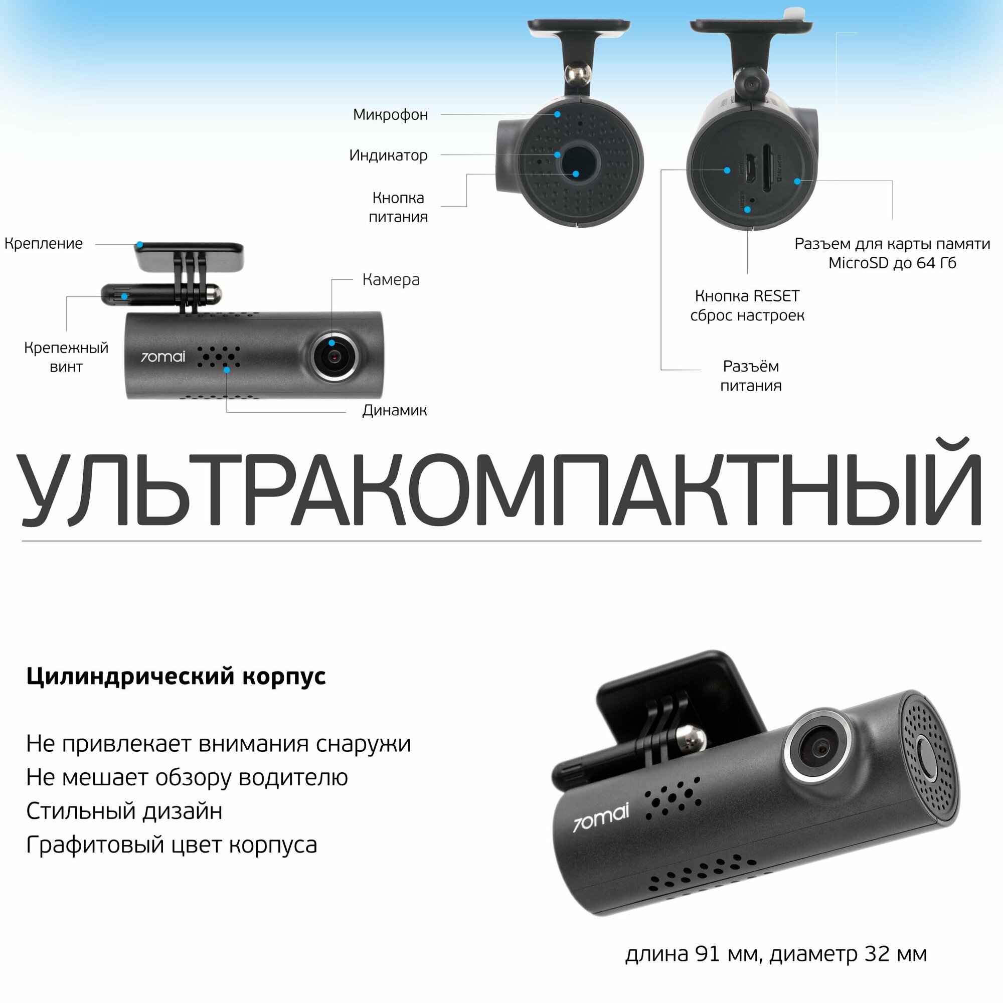 Видеорегистратор автомобильный 70mai Smart Dash Cam 1S Midrive D06, русская версия интересное: