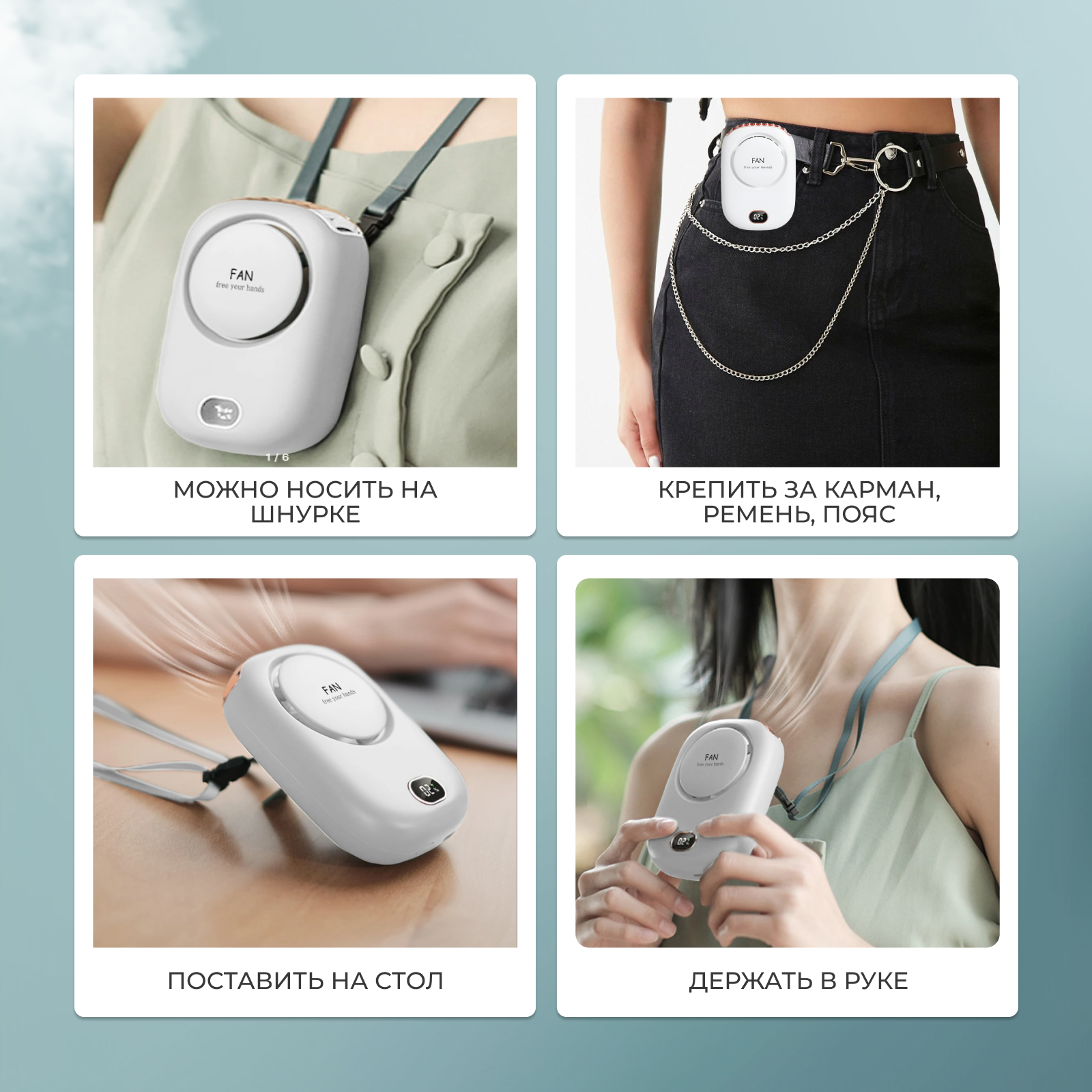 Вентилятор ручной беспроводной, портативный, с ремешком и на прищепке (USB-кабель в комплекте) интересное: