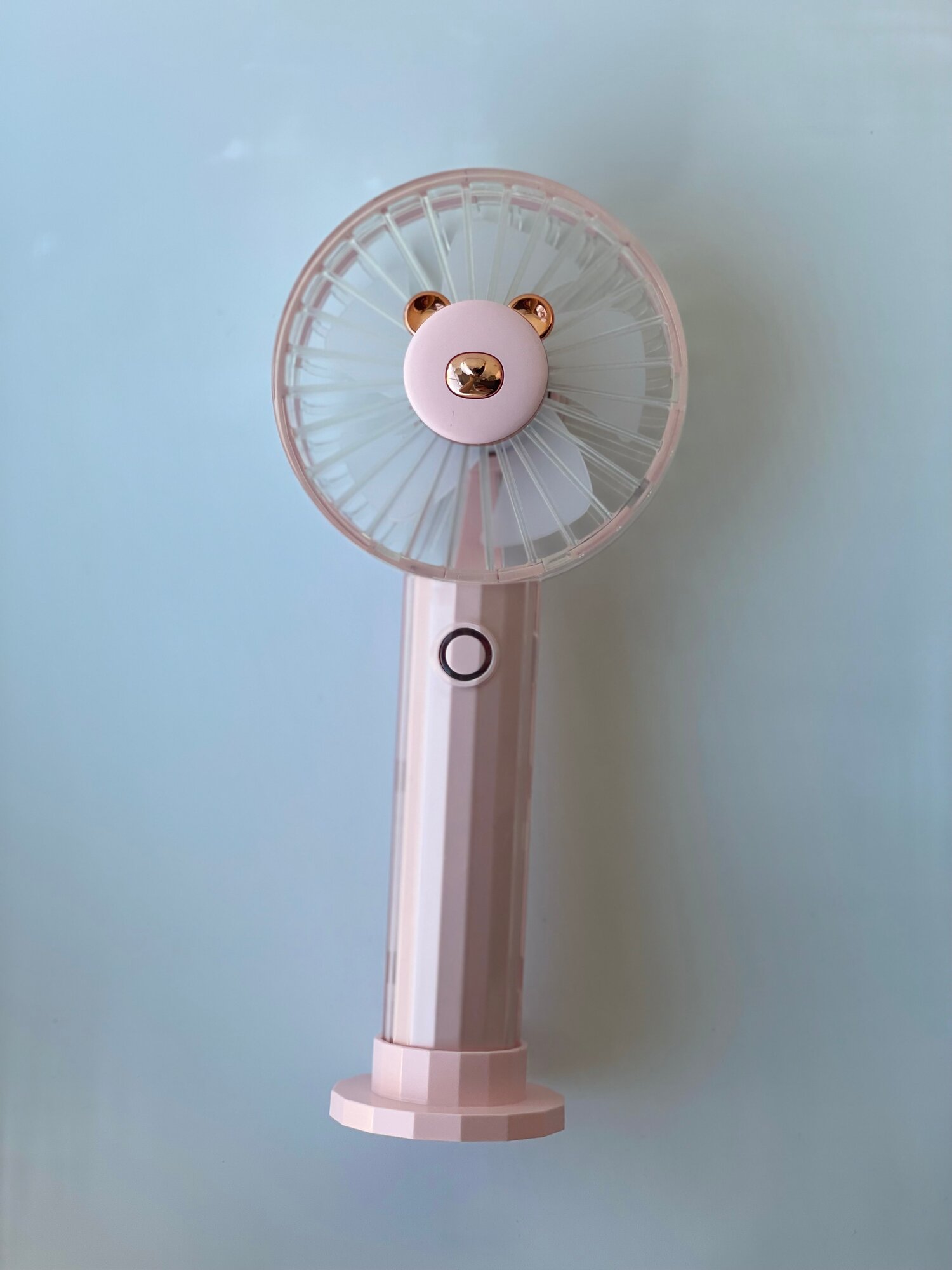 Купить Вентилятор ручной с подставкой Мишка, розовый