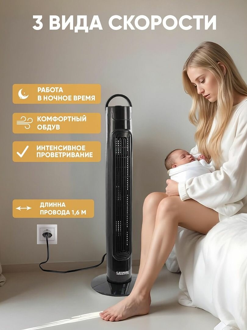 СохранитьВентилятор напольный Classmark с охлаждением бесшумный, колонный, для дома и офиса, механическое управление, 3 скорости, питание от сети, черный интересное:
