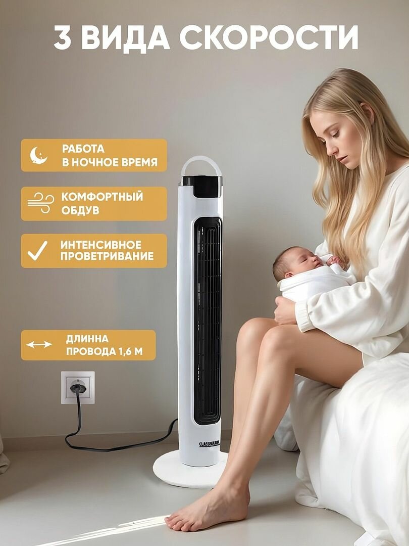 СохранитьВентилятор напольный Classmark с охлаждением бесшумный, колонный, для дома и офиса, механическое управление, 3 скорости, питание от сети, белый интересное: