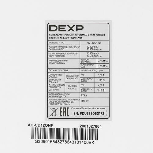 Кондиционер настенный сплит-система DEXP AC-CD12ONF белый 35m2