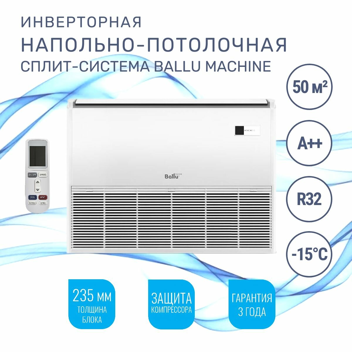 Сплит-система полупромышленная инверторная Ballu Machine BLCI_CF-18HN8/EU_23Y напольно-потолочного типа (комплект) интересное:
