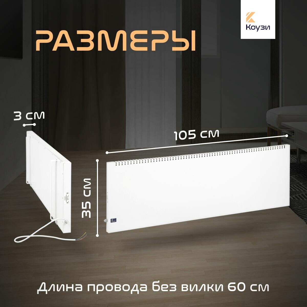 Конвектор коузи Плинтус 300Вт с вилкой