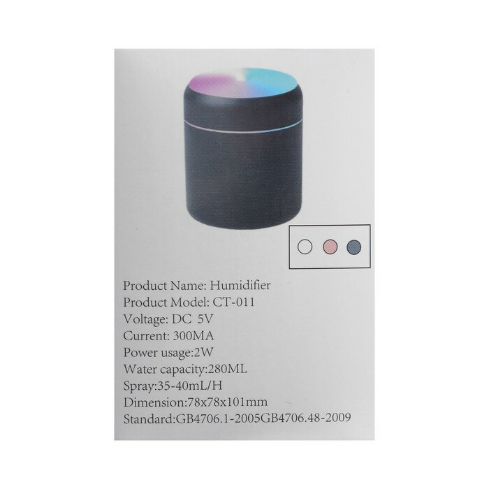 Купить Увлажнитель HM-3, ультразвуковой, 0.3 л, 2 Вт, подсветка, USB ( в комплекте), серый
