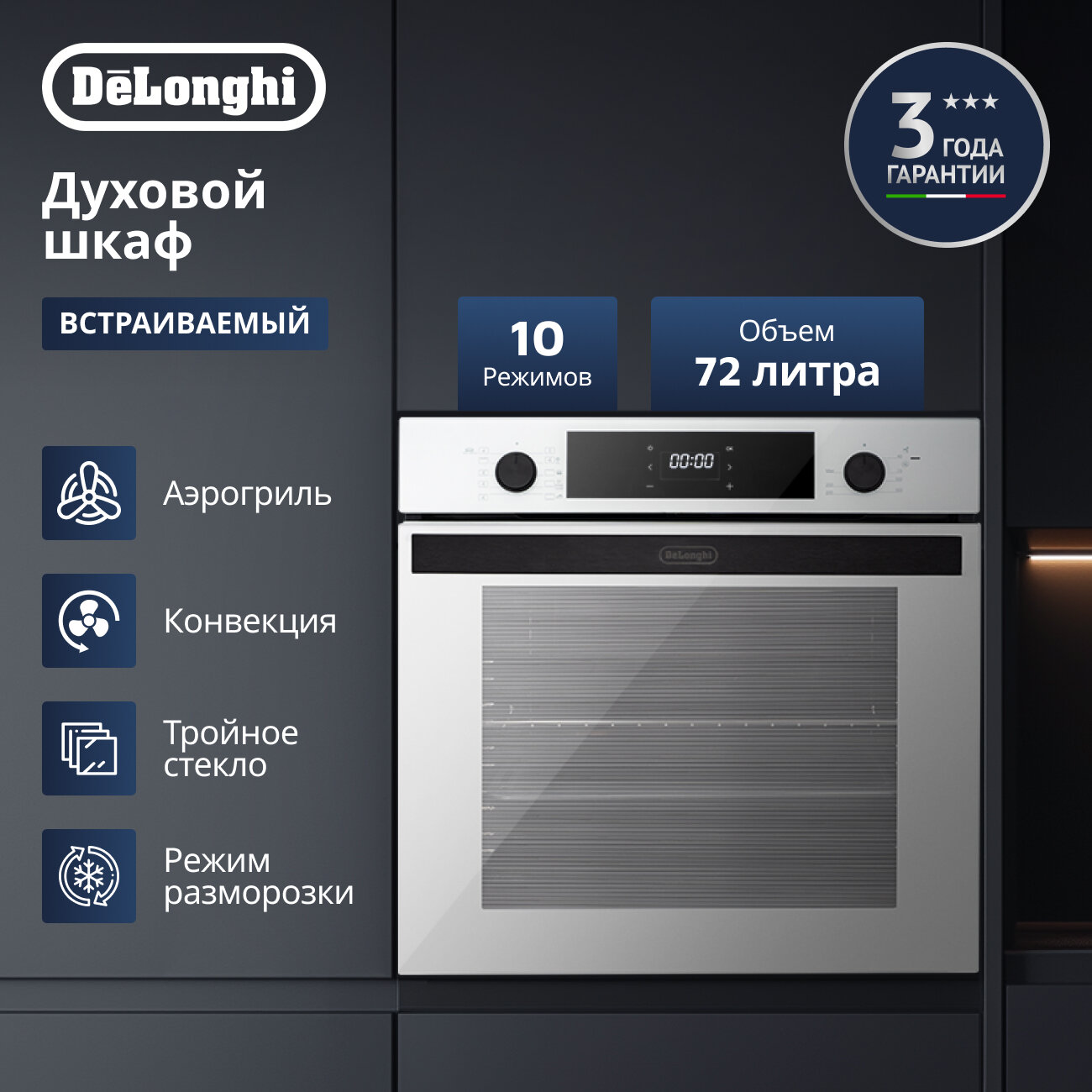 Встраиваемый электрический духовой шкаф DeLonghi DEO 755 BB MARTINA белый интересное: