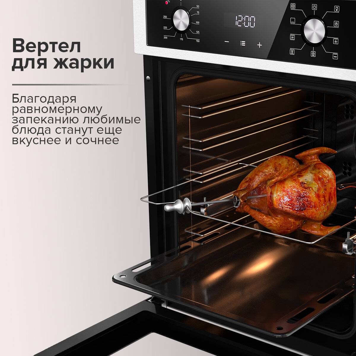 | Особенности конструкции | вертел / дисплей / подсветка камеры / телескопические направляющие / часы / эмаль легкой чистки |
