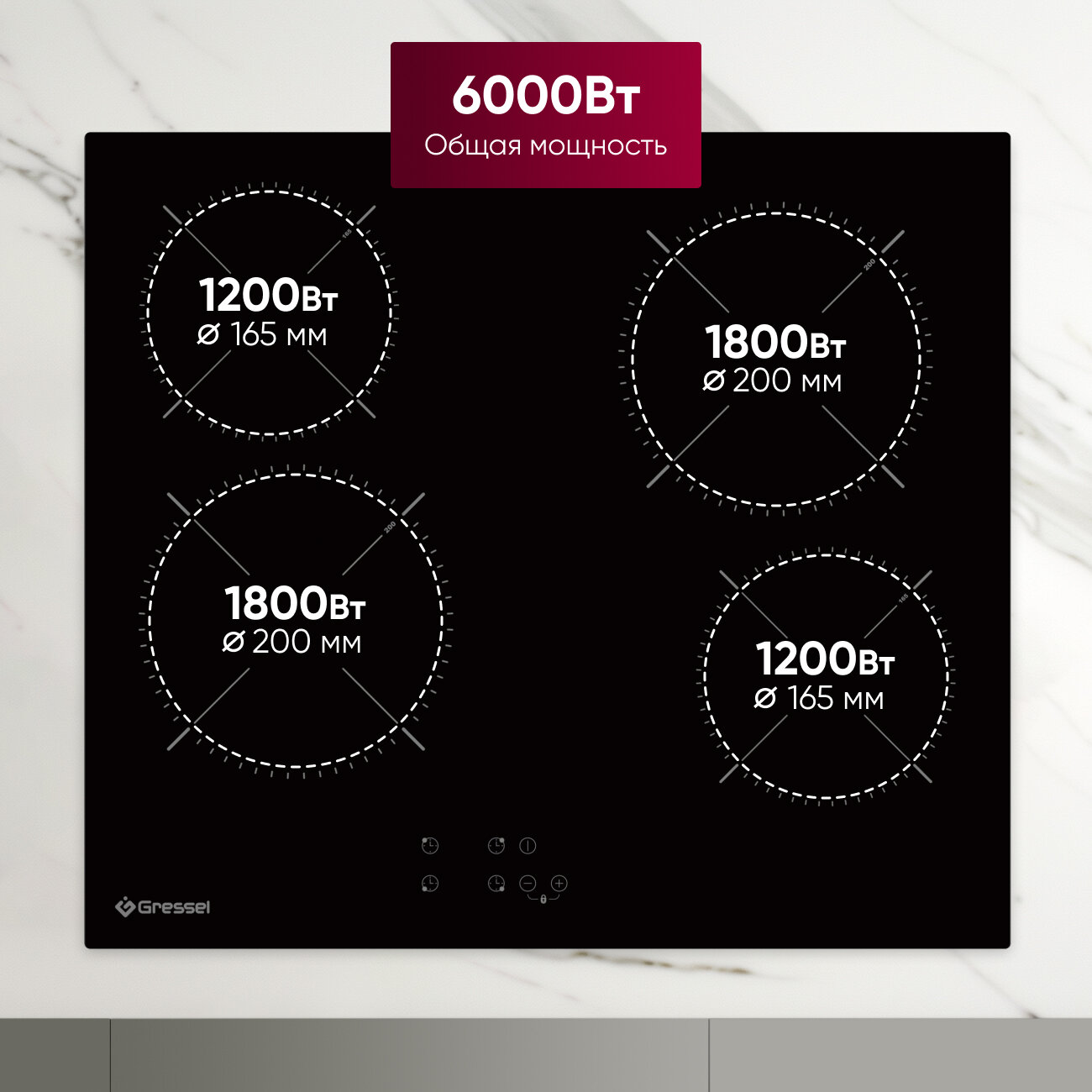 Встраиваемая индукционная варочная панель GRESSEL U60I74S000, 60 см, 7000Вт, Touch control
