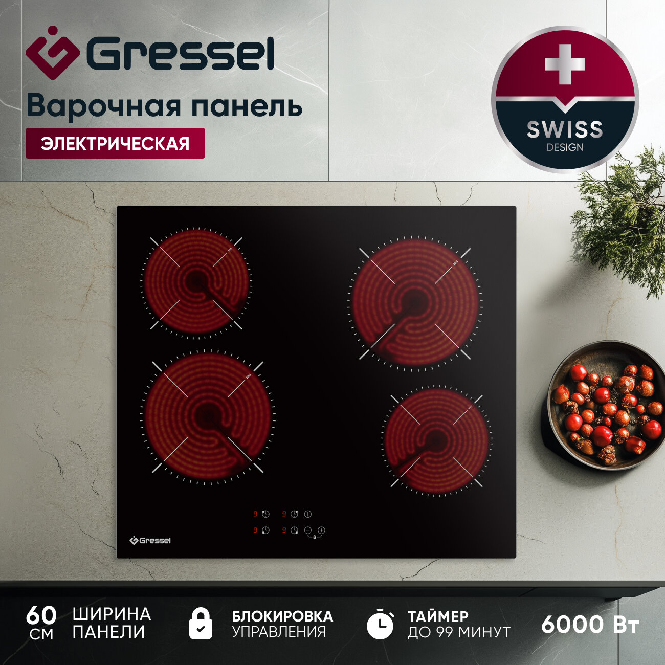 Встраиваемая электрическая варочная панель Gressel U60D24S011, 60 см, 6600Вт, Slider control