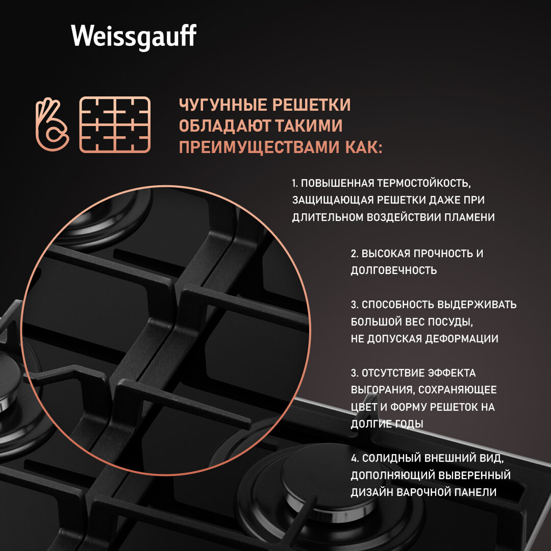 Варочная панель Weissgauff HGG 645 BGXBV WOK-конфорка, 3 года гарантии, автоматический электроподжиг, Рукоятки Hi-Tech, газ-контроль интересное:
