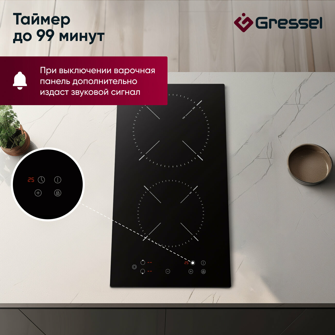 Встраиваемая индукционная варочная панель GRESSEL U30I72S001, 30 см, 3500Вт, Slider control