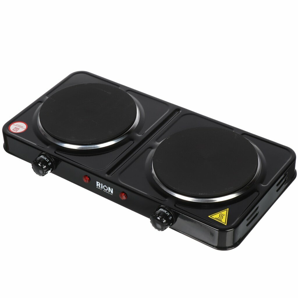 Плита электрическая Rion, 2000 Вт, 2 конфорки, диск, эмаль, механическая, переключатель поворотный, черная интересное: