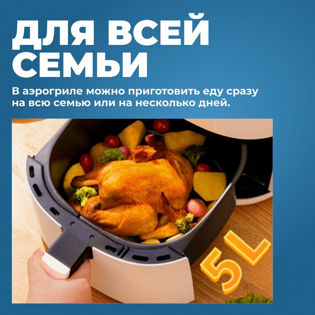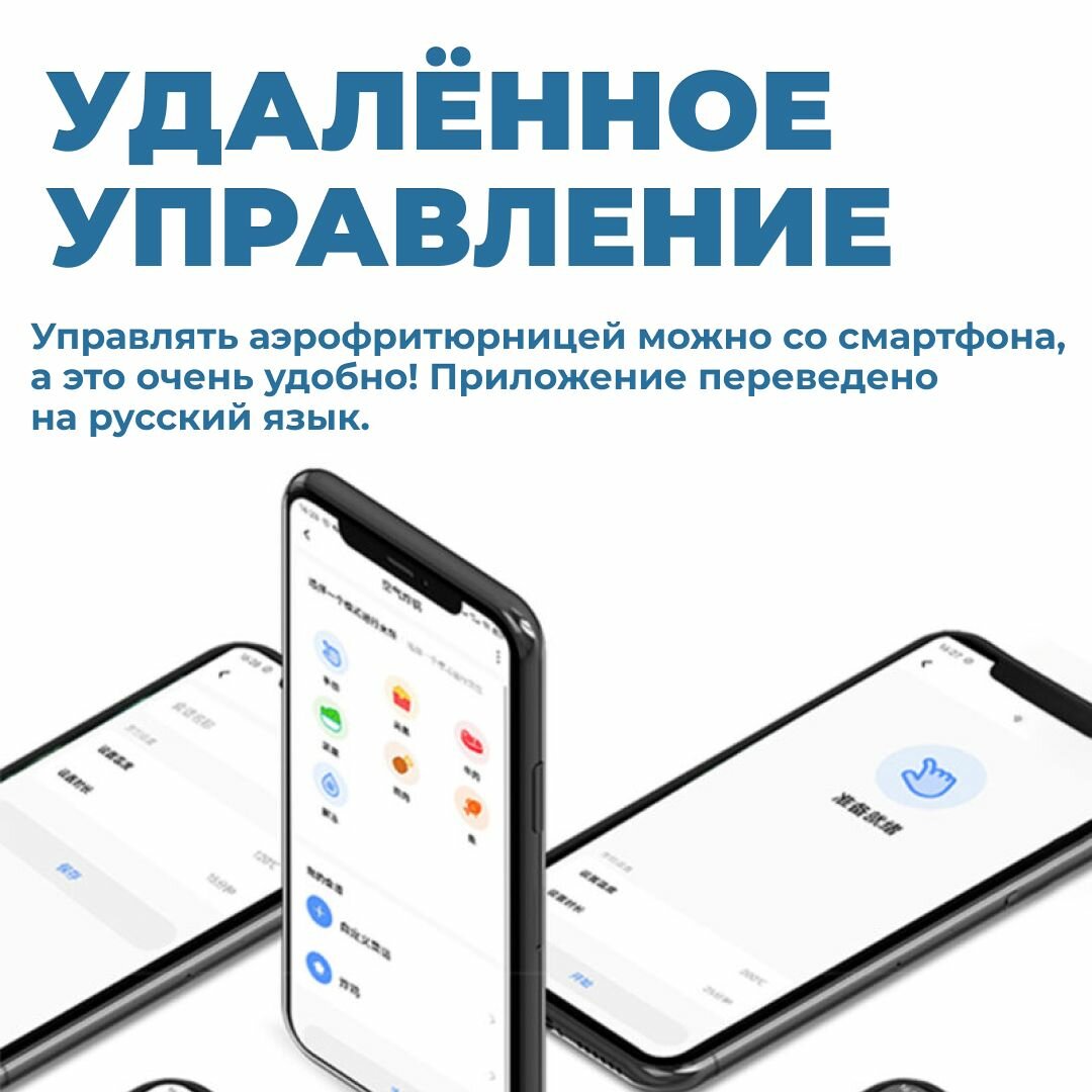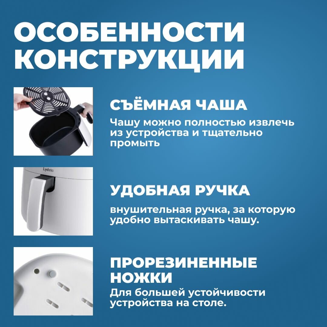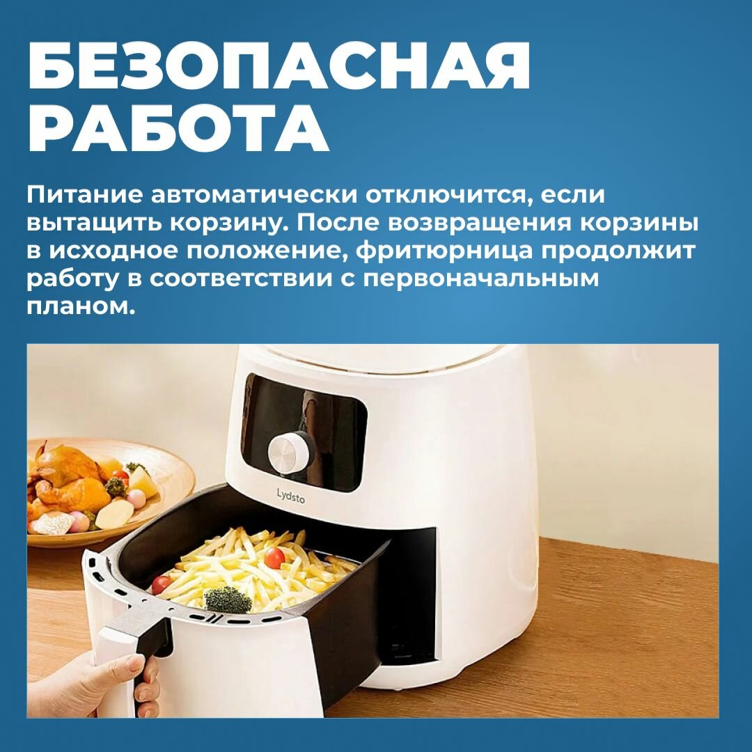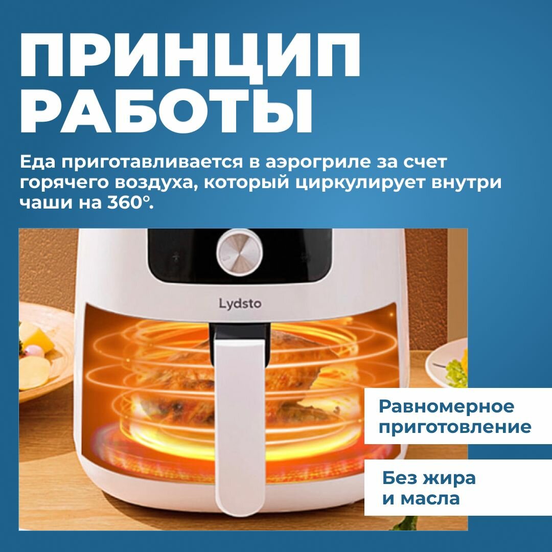 Аэрогриль для дома Lydsto Smart Air Fryer 5L для картошки фри, куриных крылышек с приложением MiHome и рецептами / Версия для России интересное: