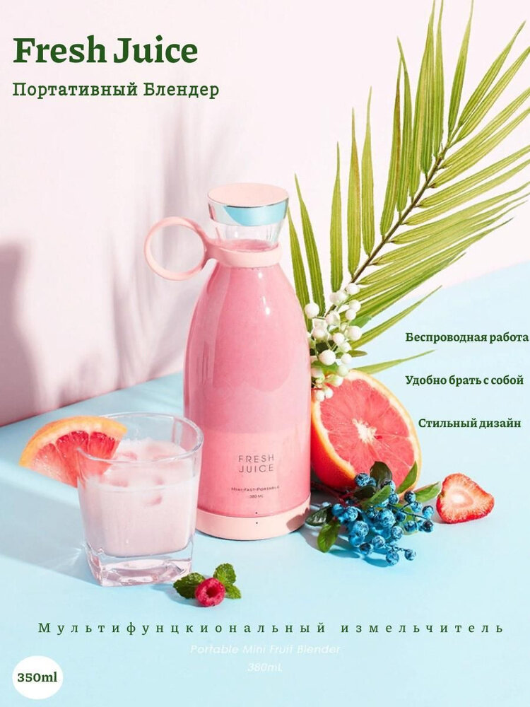 Портативный блендер Fresh Juice для смузи и напитков, Розовый интересное: