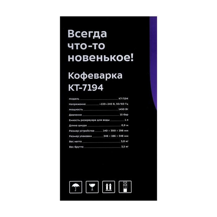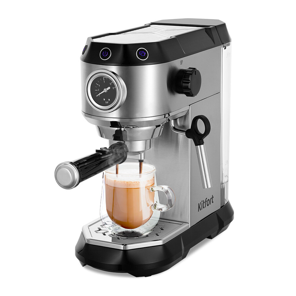 Кофеварка рожковая Kitfort КТ-7194 1450Вт нержавеющая сталь/черный интересное: