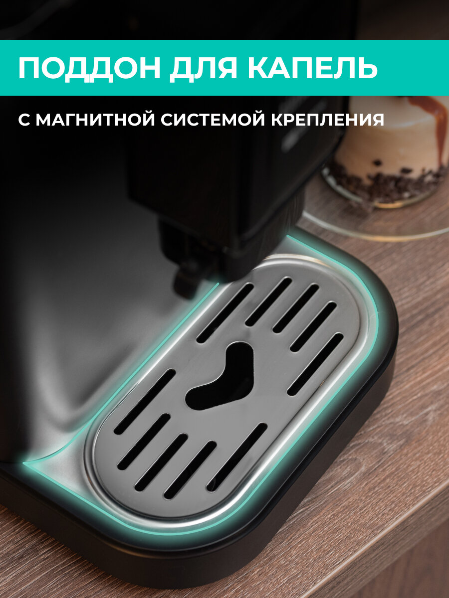 | Особенности конструкции | дисплей / индикатор включения / индикатор уровня воды / индикация отсутствия кофе / индикация работы / контейнер для отходов / подсветка / съемный лоток для сбора капель |
