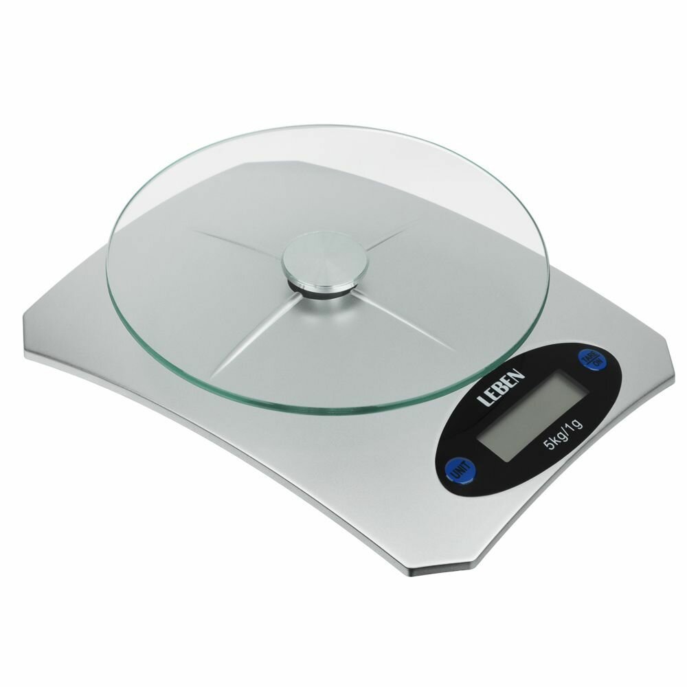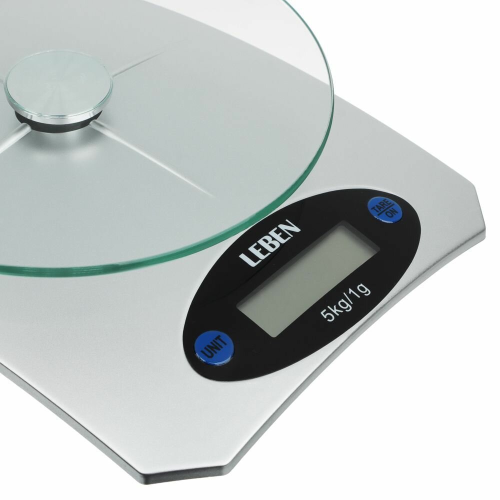 Весы кухонные электронные, нагрузка до 5 кг, пластик, стекло, 20x15x4,5 см LEBEN