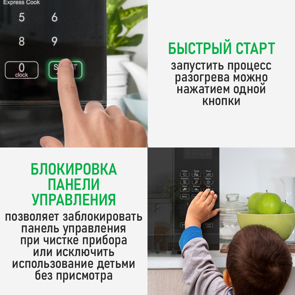 Микроволновая печь FS MWO D 20.10 WH, Сенсорное управление, 6 программ для приготовления, антипригарная эмаль, таймер, блокировка от детей.