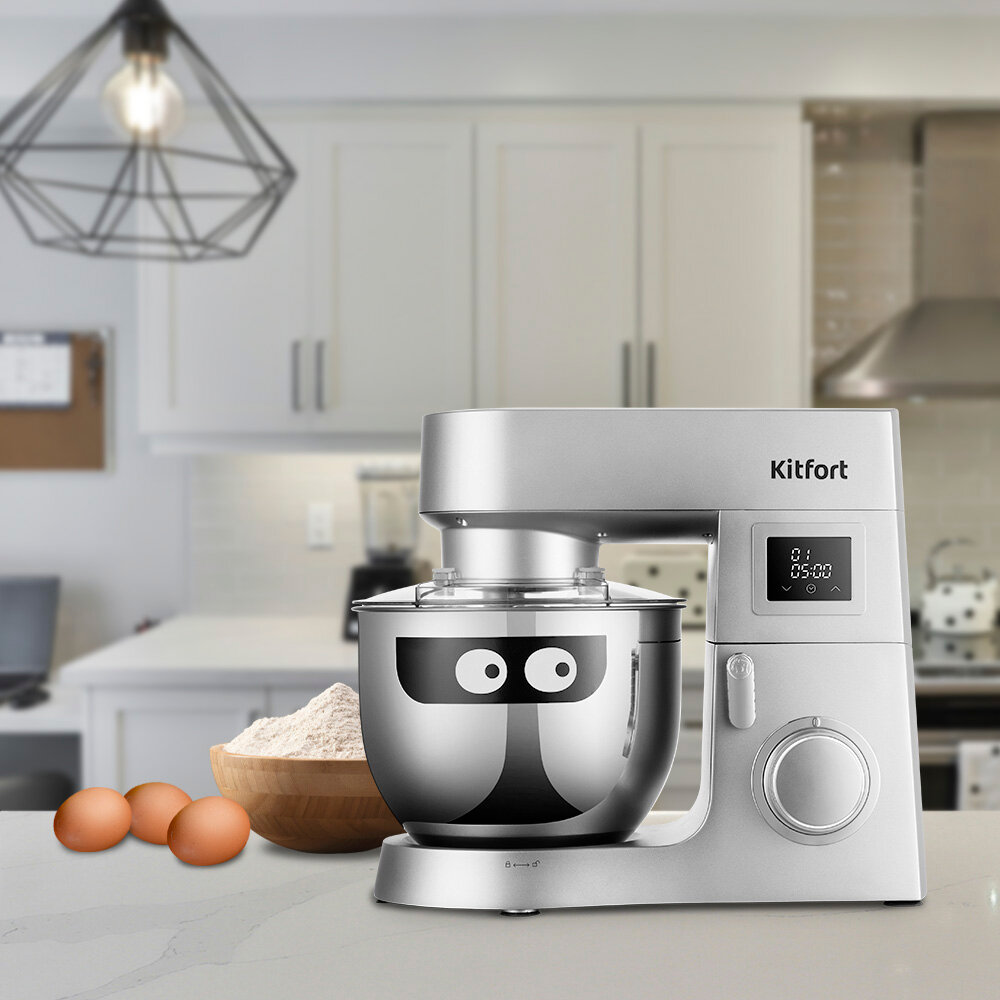 Цельнометаллический планетарный миксер Kitfort КТ-3435-2 серый интересное: