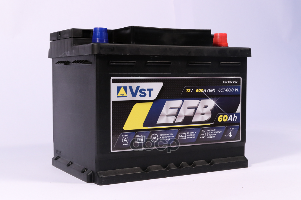 Аккумулятор 12V Efb 60Ah 600А 242X175x190 Полярность 0 VST арт. 560500060 интересное: