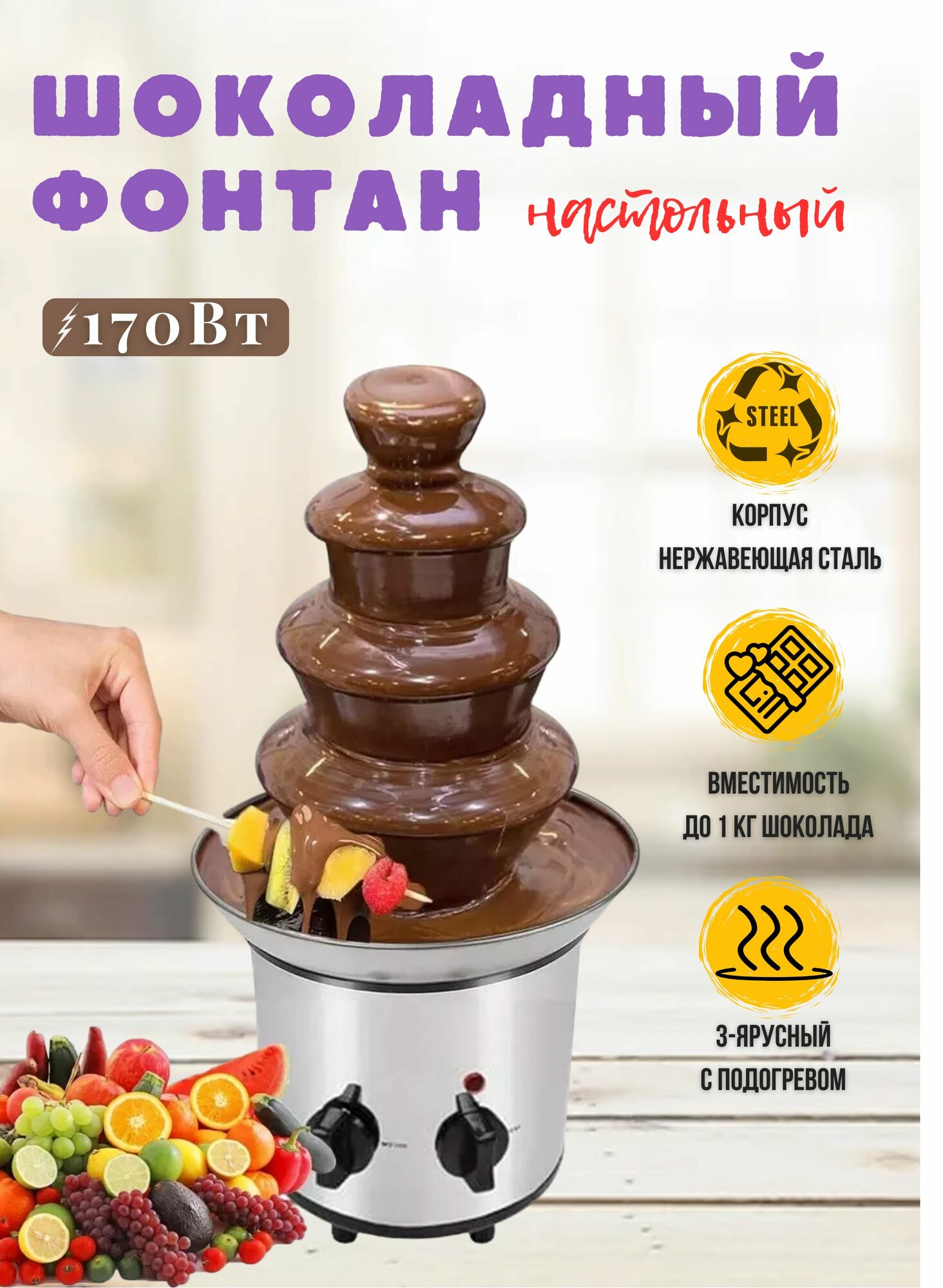 Шоколадный фонтан настольный, фондю интересное: