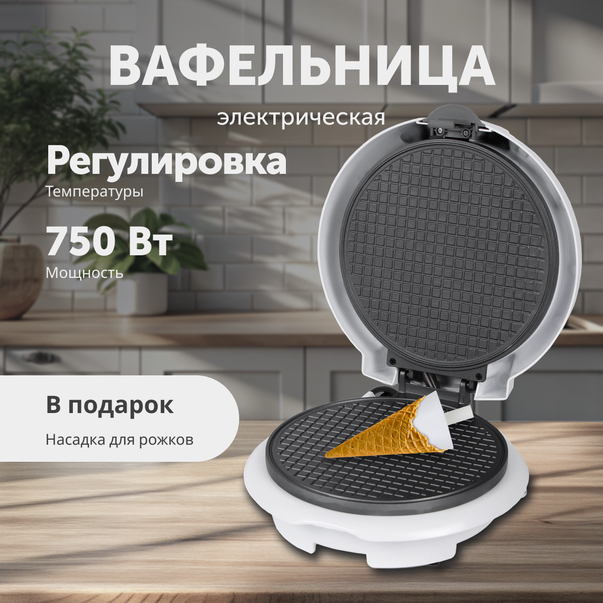 Электрическая вафельница для рожков, 750 Вт, белая интересное: