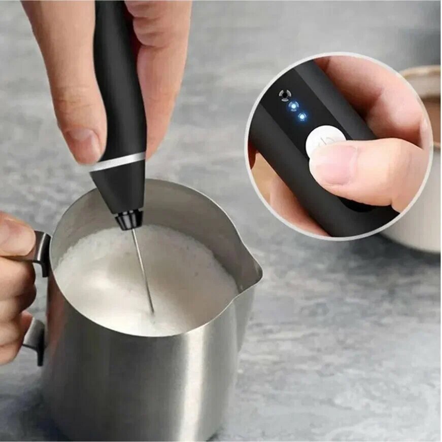 Купить Капучинатор с USB зарядкой. Вспениватель для молока и сливок. Мини-миксер 3 режима 2 насадки, Черный