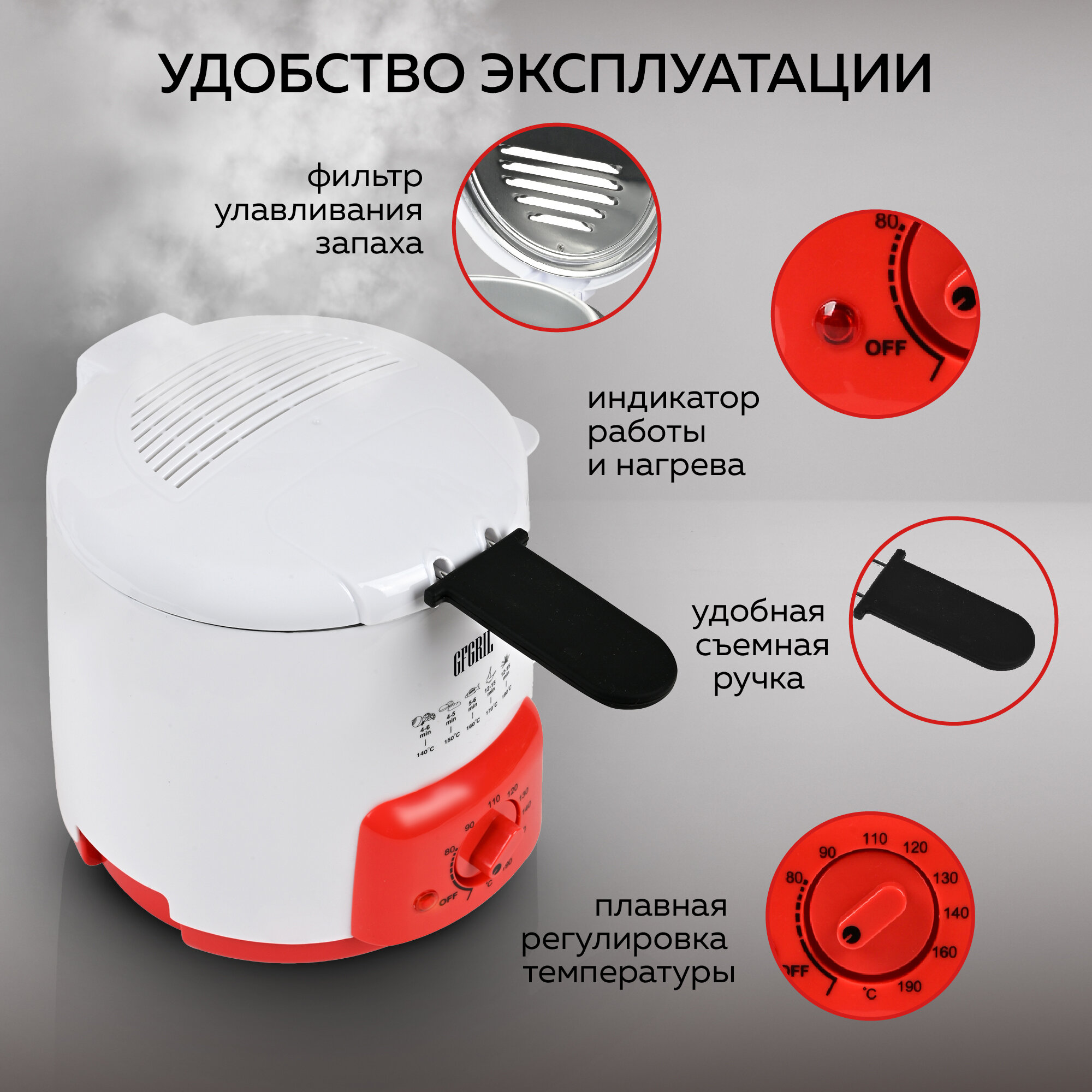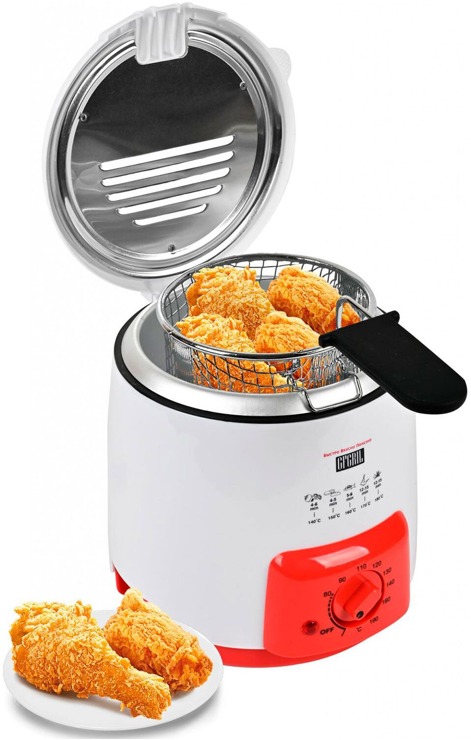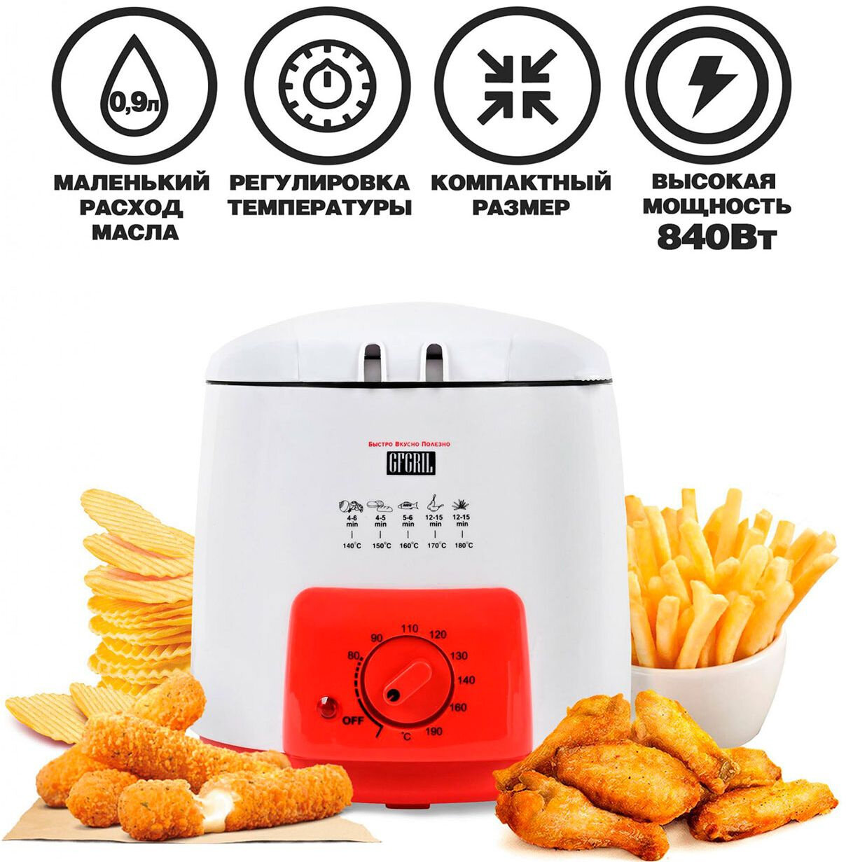 GFGRIL электрическая фритюрница GFGRIL GFF-09, 0,9 литра, компактная, регулировка температуры, со съемной корзиной и встроенной чашей с антипригарным покрытием интересное: