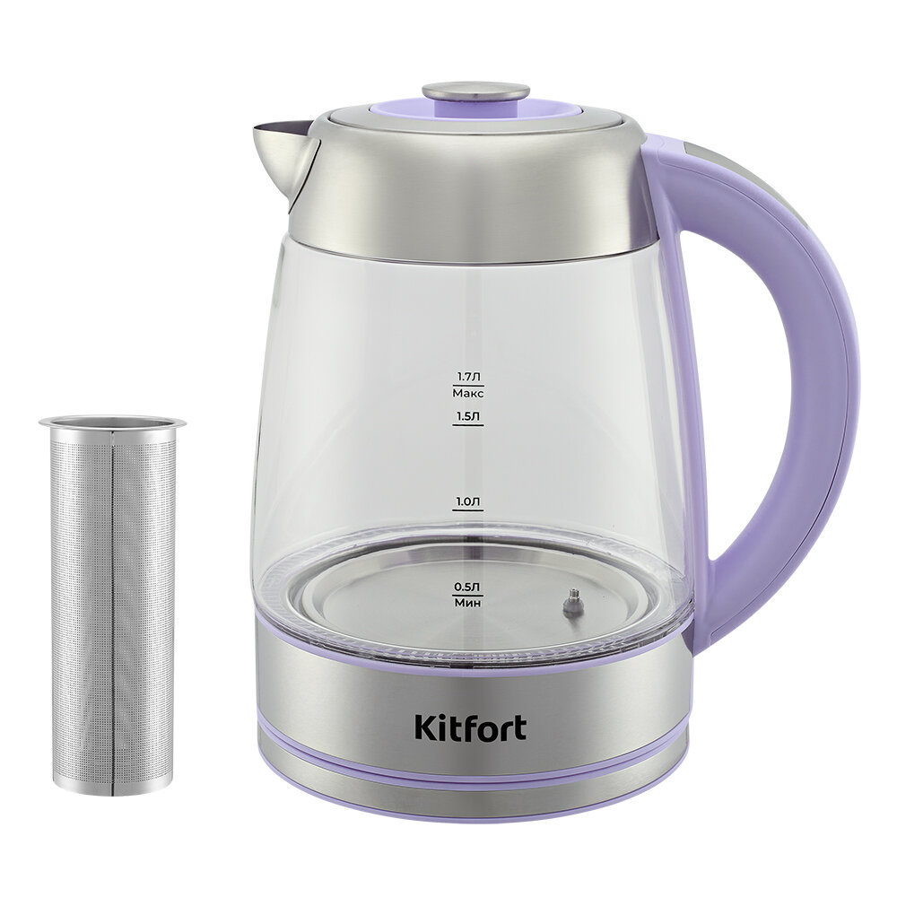Чайник электрический KitFort КТ-6624, 2200Вт, лавандовый и нержавеющая сталь