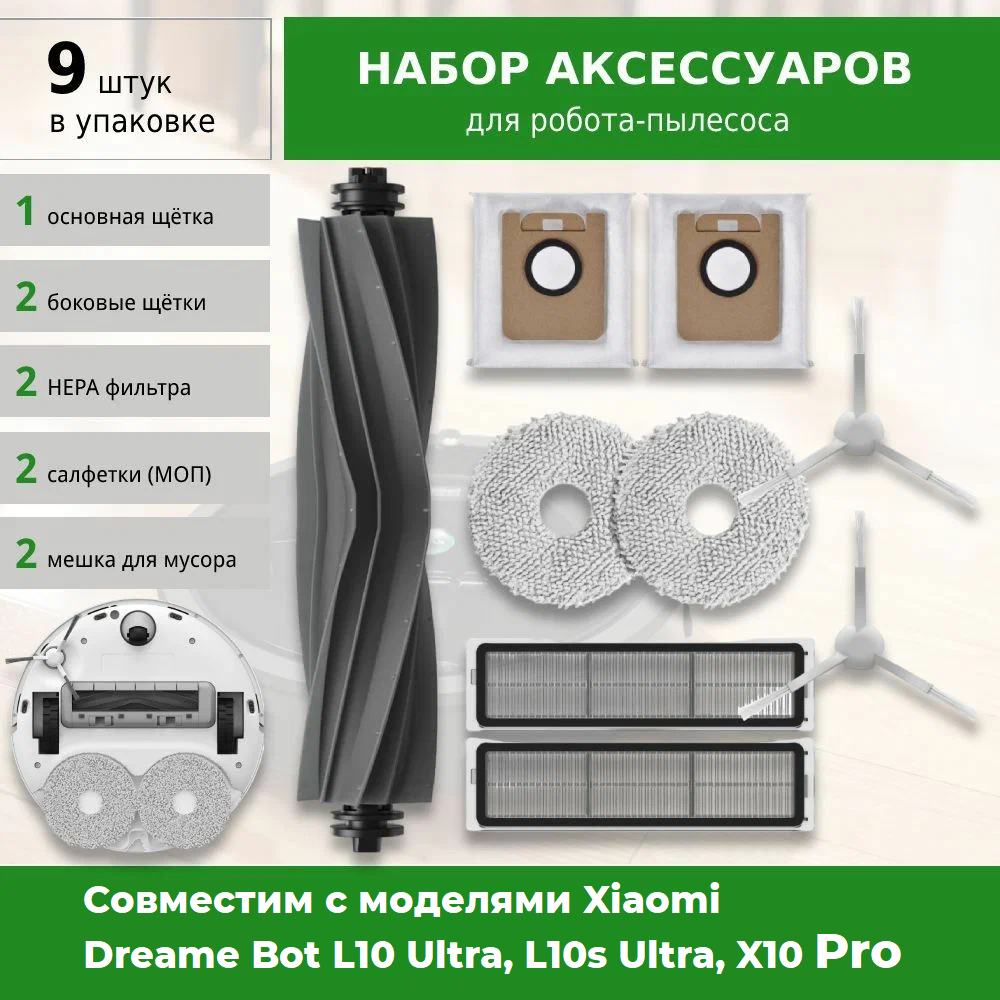 Комплект фильтров, щеток и тряпок МОП для робота-пылесоса Dreame Bot L10s Ultra, Mijia Omni, X10 Plus, S10+, B101GL, B101CN, B116CN