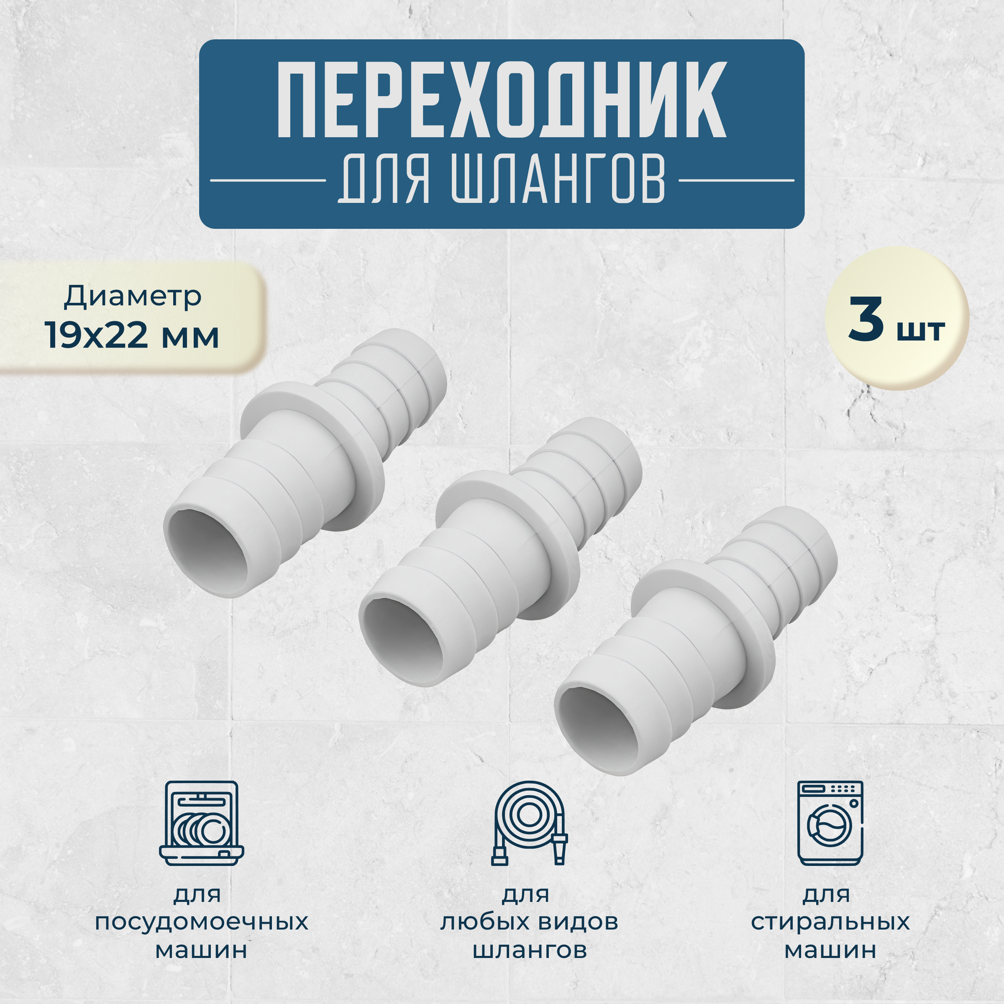 Соединитель для поливочных, стиральных и посудомоечных шлангов, 19х22 мм. 3 штуки интересное: