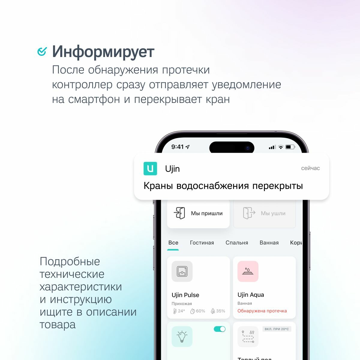 Умная система защиты от протечек воды UJIN Water Control S-ALP-01, голосовое управление, совместим с Яндекс Алисой, умный дом интересное: