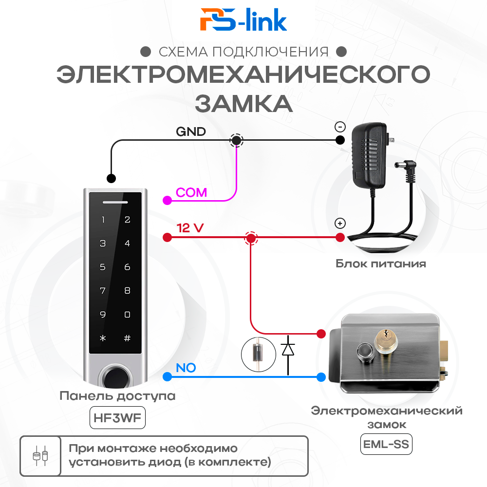 Комплект СКУД WIFI на одну дверь PS-link KIT-HF3WF-SSM с электрическим замком интересное: